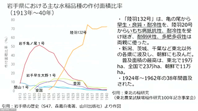 国立農事試験場陸羽支場が開発した「陸羽132号」の種籾が岩手県立農事試験場胆江分場に配布。
