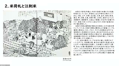 消費地への俵米共同出荷の戦略性、さらに、赤札を金札に付け替え、大黒像を米俵に封入してブランドを証明する画期的なプロモーション手法を明らかにしていく。
